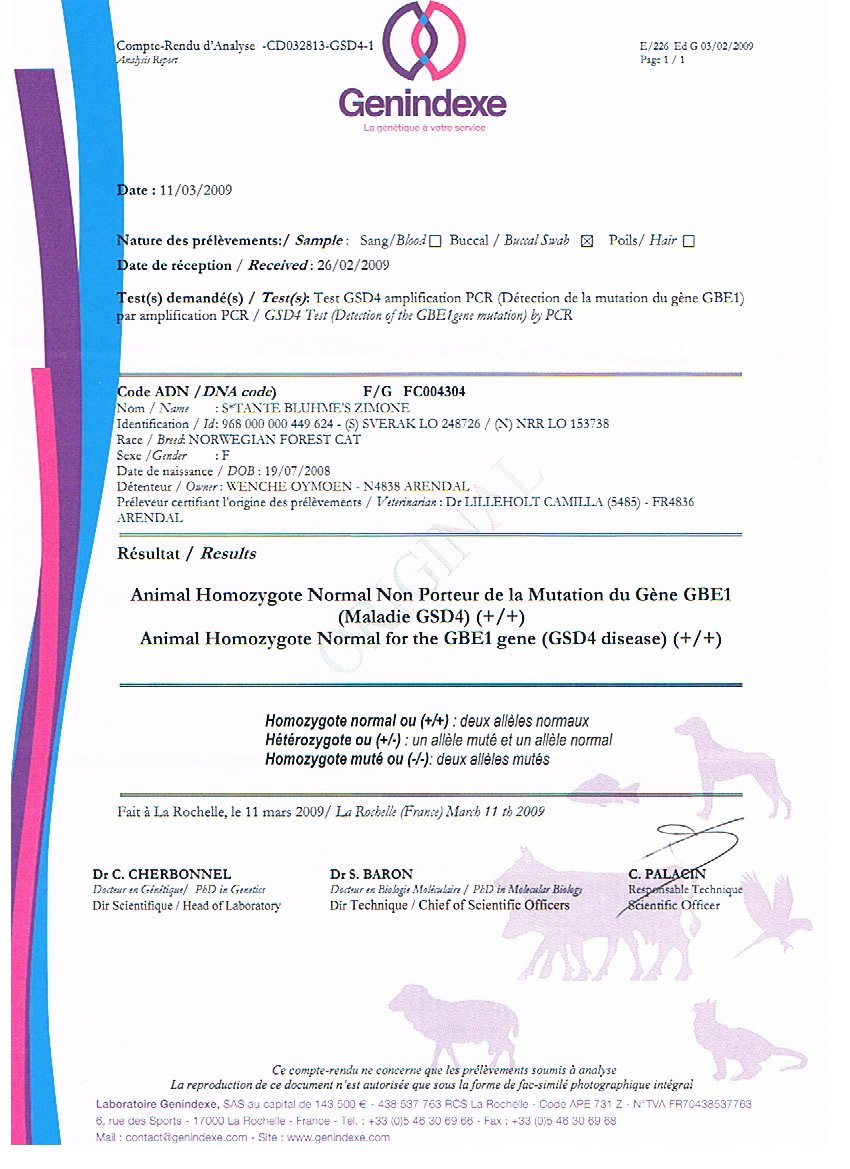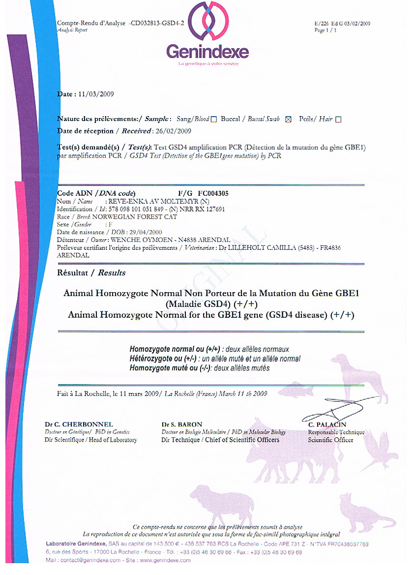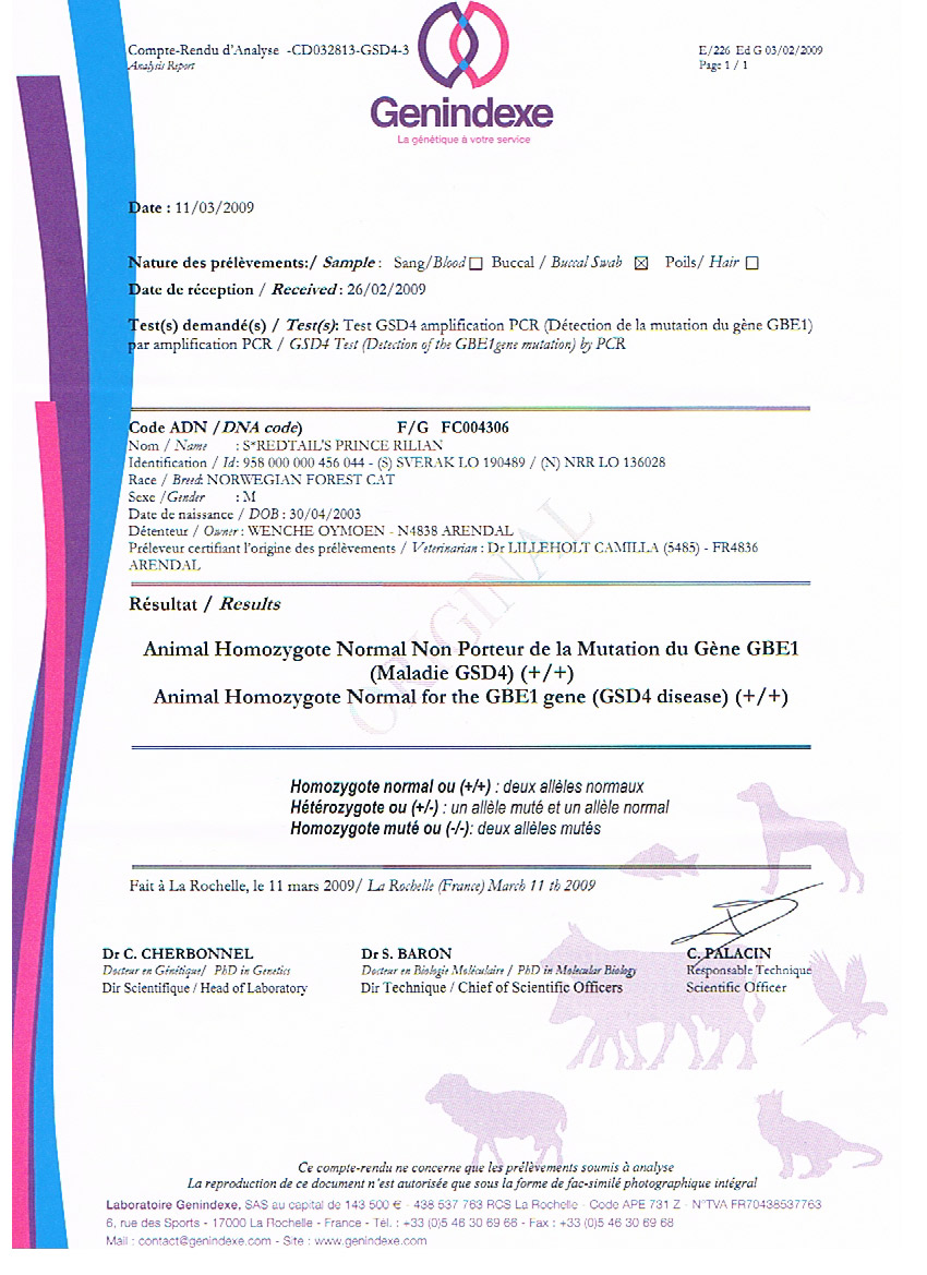 HCM - first scan 2012, Normal HCM Norwegian Forest Cat Testing Results